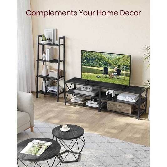 Industrial Black Metal Wood TV Stand Entertainment Center for TV up to 70-inch