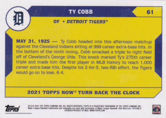 2021 TURN BACK THE CLOCK #61 TY COBB- DETROIT TIGERS
