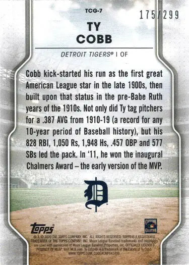 Topps Of The Class Baseball 2020 Greats Foil Card TCG-7 Ty Cobb 175/299