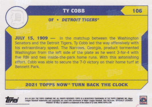 2021 TURN BACK THE CLOCK #106 TY COBB- DETROIT TIGERS