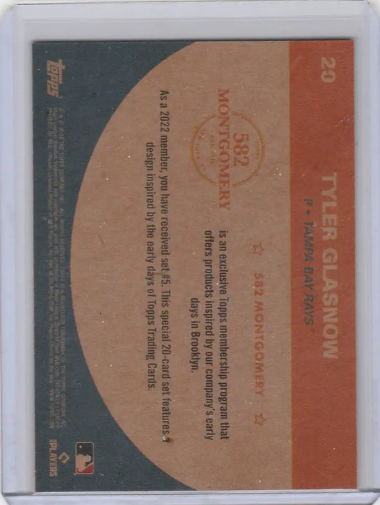 2022 Topps 582 Montgomery Set #5 #20 TYLER GLASNOW TAMPA BAY RAYS
