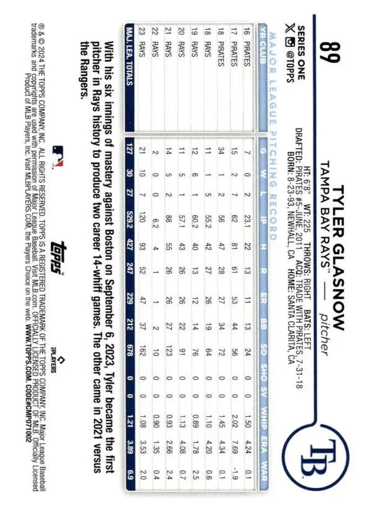 2024 Topps #89 Tyler Glasnow NM-MT Tampa Bay Rays Baseball Card