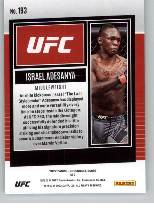 2022 Panini Chronicles UFC #193 Israel Adesanya NM-MT Middleweight MMA Card