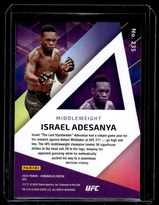 2022 Panini Chronicles UFC #235 Israel Adesanya NM-MT Middleweight MMA Card