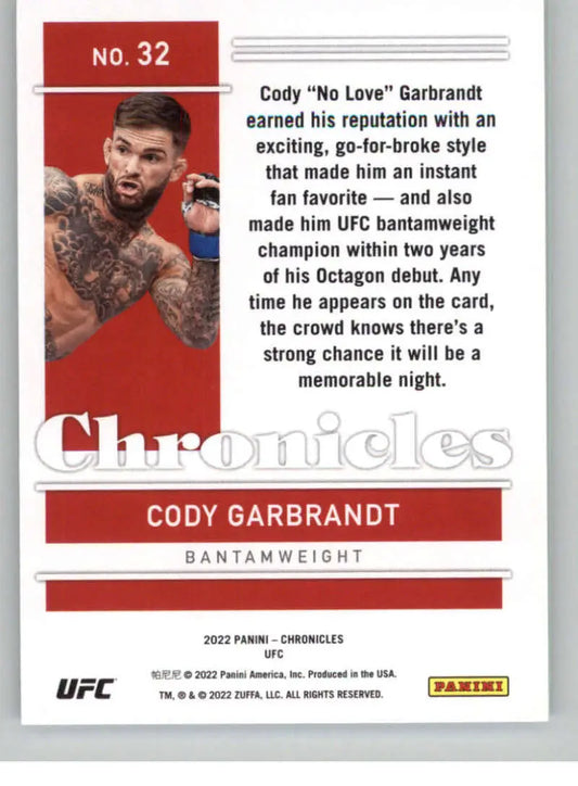 2022 Panini Chronicles UFC #32 Cody Garbrandt NM-MT Bantamweight MMA Card