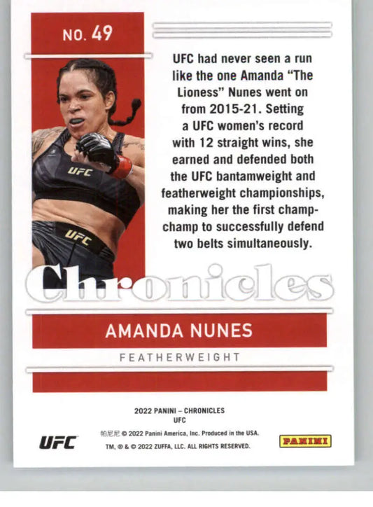 2022 Panini Chronicles UFC #49 Amanda Nunes NM-MT Featherweight MMA Card