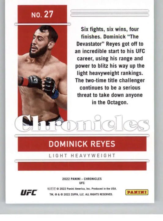 2022 Panini Chronicles UFC #27 Dominick Reyes NM-MT Light Heavyweight MMA Card