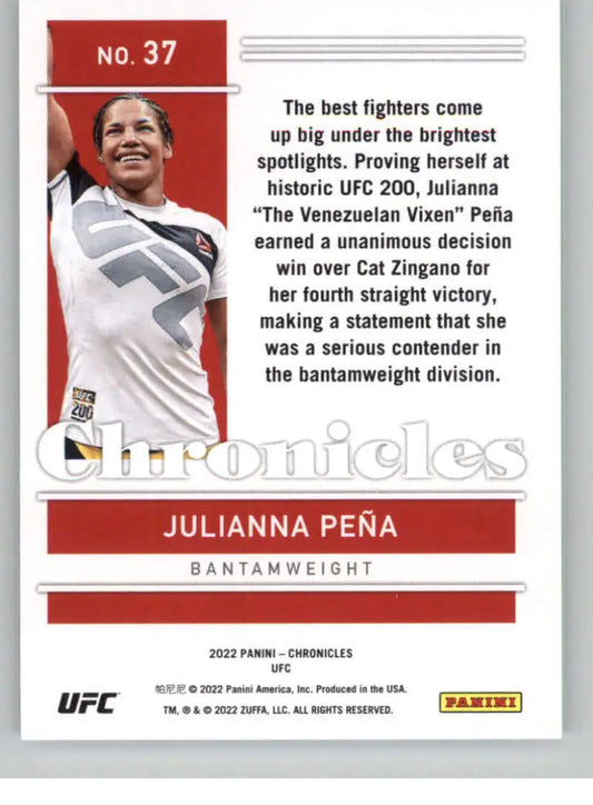 2022 Panini Chronicles UFC #37 Julianna Pena NM-MT Bantamweight MMA Card