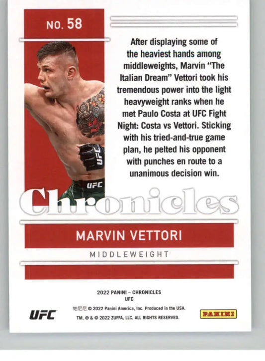 2022 Panini Chronicles UFC #58 Marvin Vettori NM-MT Middleweight MMA Card