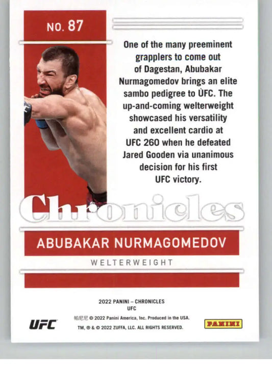 2022 Panini Chronicles UFC #87 Abubakar Nurmagomedov NM-MT RC Rookie Welterweight MMA Card