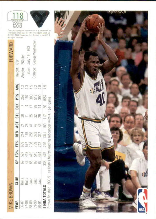 1991-92 Upper Deck #118 Mike Brown NM-MT Utah Jazz Basketball Card