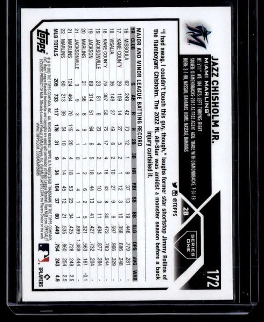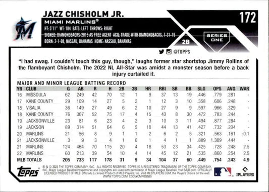 2023 Topps #172 Jazz Chisholm Jr. NM-MT Miami Marlins Baseball Card