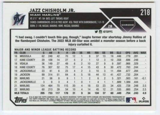 2023 Topps Chrome #218 Jazz Chisholm Jr. NM-MT Miami Marlins Baseball Card