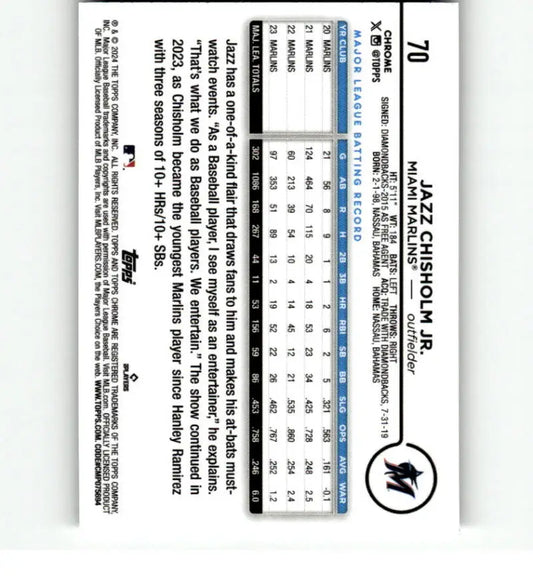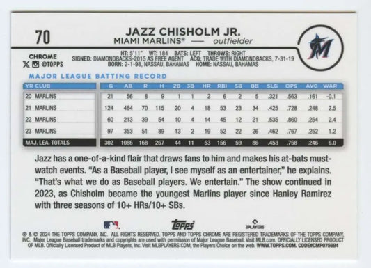 2024 Topps Chrome Refractor Negative #70 Jazz Chisholm Jr. NM-MT Miami Marlins Baseball Card