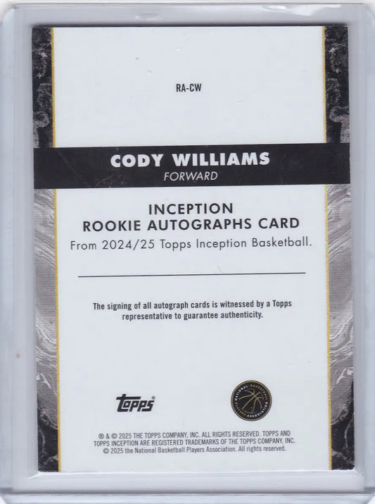 2025 TOPPS INCEPTION #RA-CW CODY WILLIAMS AUTO 21/25- UTAH JAZZ