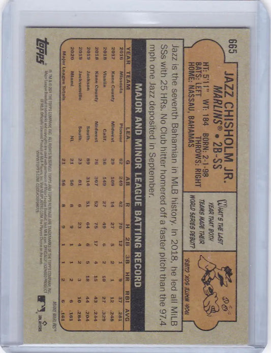 2021 Topps Heritage #665 Jazz Chisholm Jr. Rookie Card Miami Marlins
