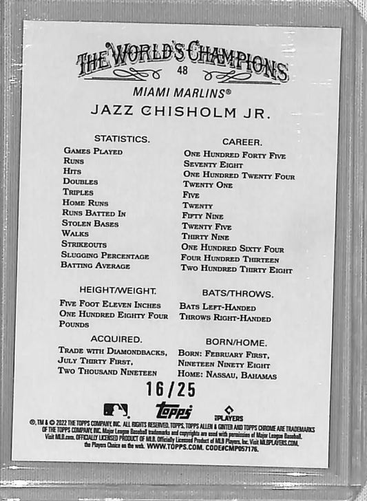 2022 Topps Allen & Ginter Chrome #48 Jazz Chisholm Jr. Orange Refractor #/25 NM-MT Baseball Card