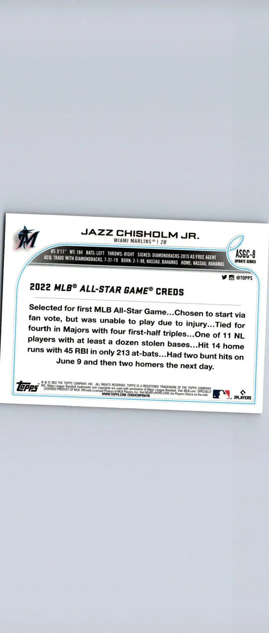 Jazz Chisholm Jr. 2022 Topps Update 2022 MLB All-Star Game #ASG-8 Miami Marlins