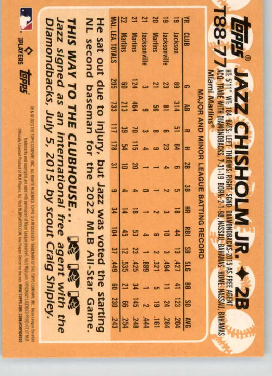 2023 Topps 1988 Baseball #T88-77 Jazz Chisholm Jr. NM-MT Miami Marlins Baseball Card