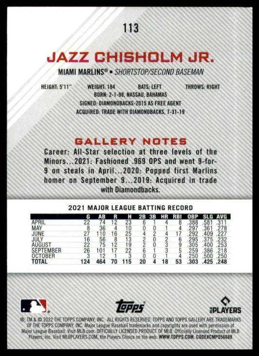 Jazz Chisholm Jr. 2022 Topps Gallery Rainbow Foil #113 Miami Marlins