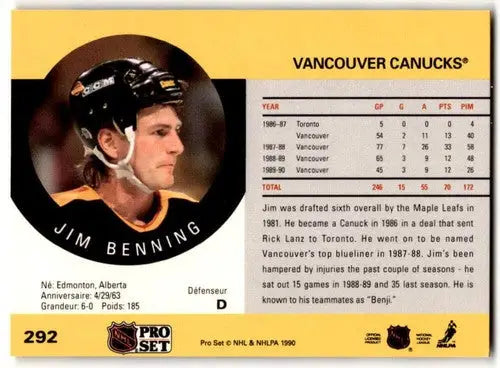1990-91 Pro Set #292 Jim Benning NM Near Mint Canucks ID:43134