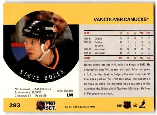 1990-91 Pro Set #293 Steve Bozek NM Near Mint Canucks ID:43135