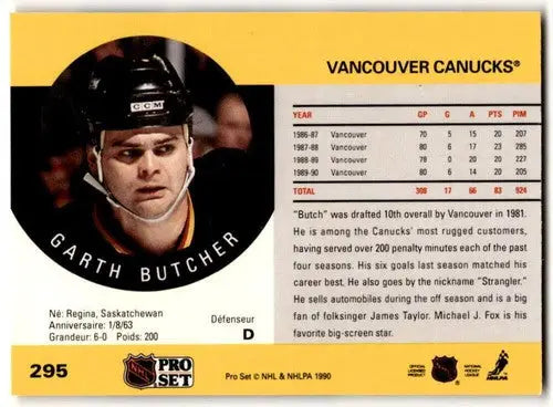1990-91 Pro Set #295 Garth Butcher NM Near Mint Canucks ID:43137