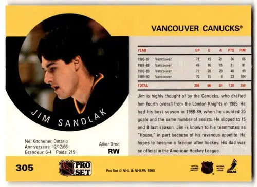 1990-91 Pro Set #305 Jim Sandlak NM Near Mint Canucks ID:43147