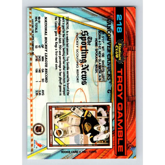 1991-92 Topps Stadium Club #218 Troy Gamble NM-MT Vancouver Canucks Hockey Card