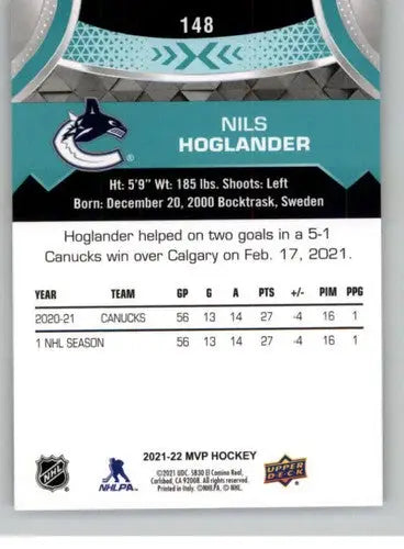2021-22 Upper Deck MVP #148 Nils Hoglander NM-MT Canucks ID:39061