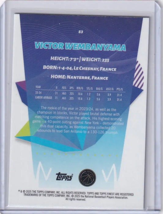 2024-25 Finest Basketball Sky Blue #83 Victor Wembanyama - San Antonio Spurs