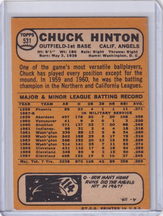 1968 Topps Baseball #531 Chuck Hinton - California Angels