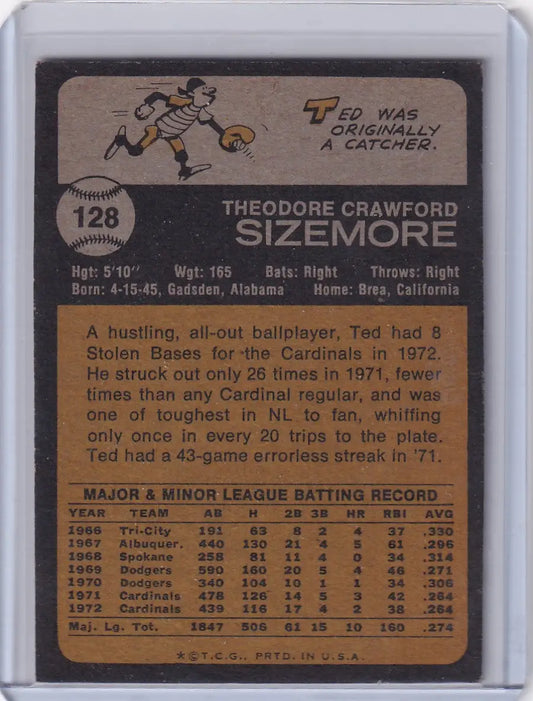 1973 Topps Baseball #128 Ted Sizemore - St. Louis Cardinals