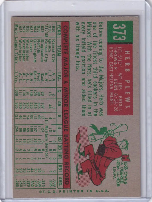 1959 Topps Baseball #373 Herb Plews - Washington Senators