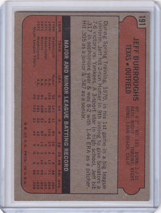 1972 Topps Baseball #191 Jeff Burroughs RC - Texas Rangers