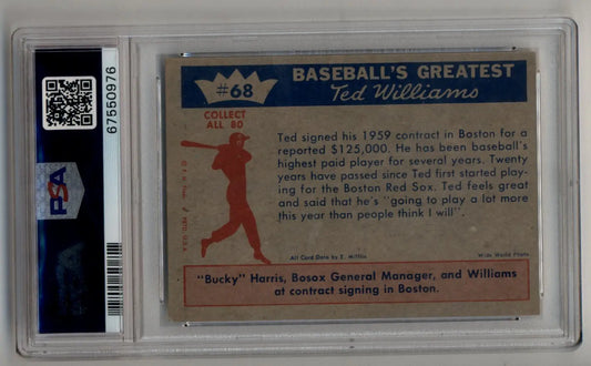 Ted Williams 1959 Fleer #68 Signs for 1959 SP PSA 7 Near Mint