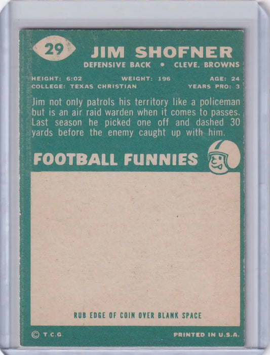 1960 Topps Football # 29 Jim Shofner RC - Cleveland Browns