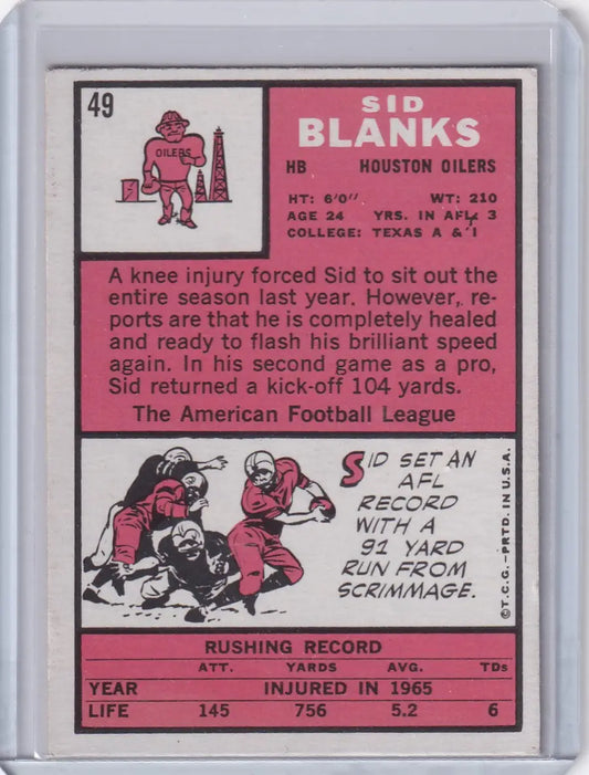 1966 Topps Football #49 Sid Blanks - Houston Oilers
