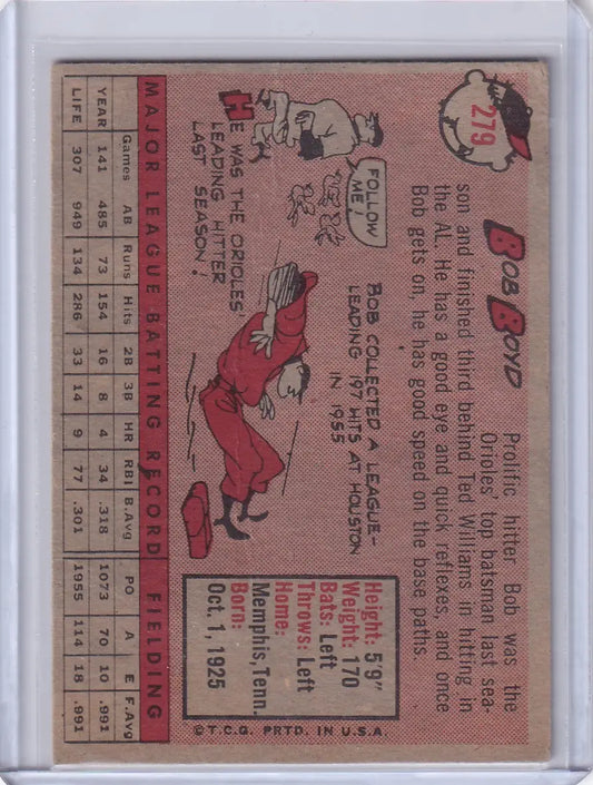 1958 Topps #279 Bob Boyd - Baltimore Orioles