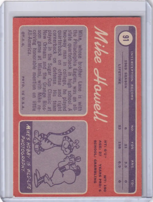 1970 Topps Football #91 Mike Howell RC - Cleveland Browns
