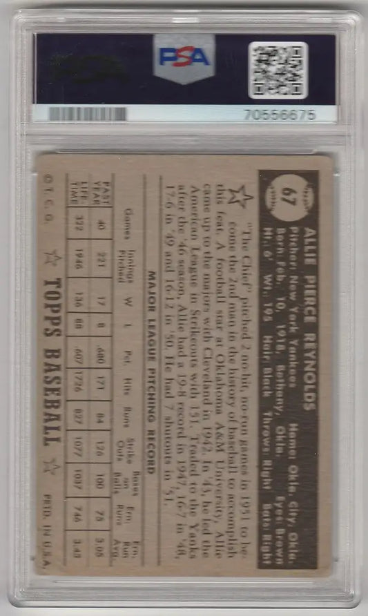 1952 Topps #67 Allie Reynolds Black Back New York Yankees PSA 2