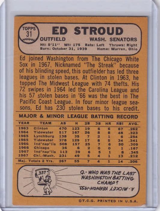 1968 Topps Baseball #31 Ed Stroud - Washington Senators