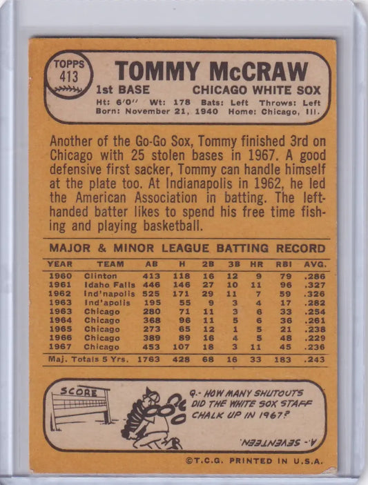 1968 Topps Baseball #413 Tommy McCraw - Chicago White Sox
