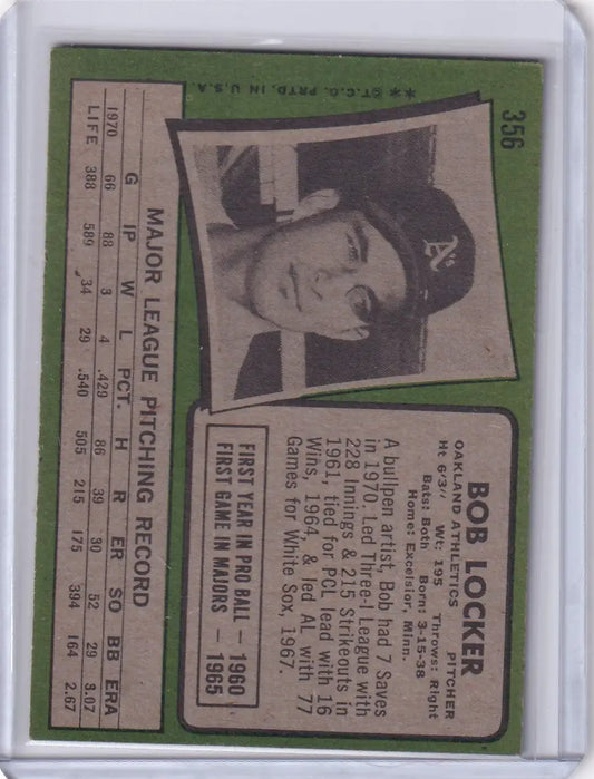 1971 Topps Baseball #356 Bob Locker - Oakland Athletics