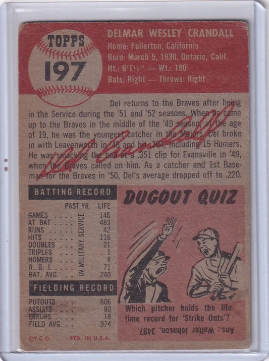 1953 Topps Baseball #197 Del Crandall - Milwaukee Braves