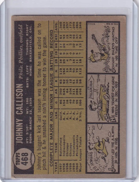 1961 Topps #468 Johnny Callison - Philadelphia Phillies