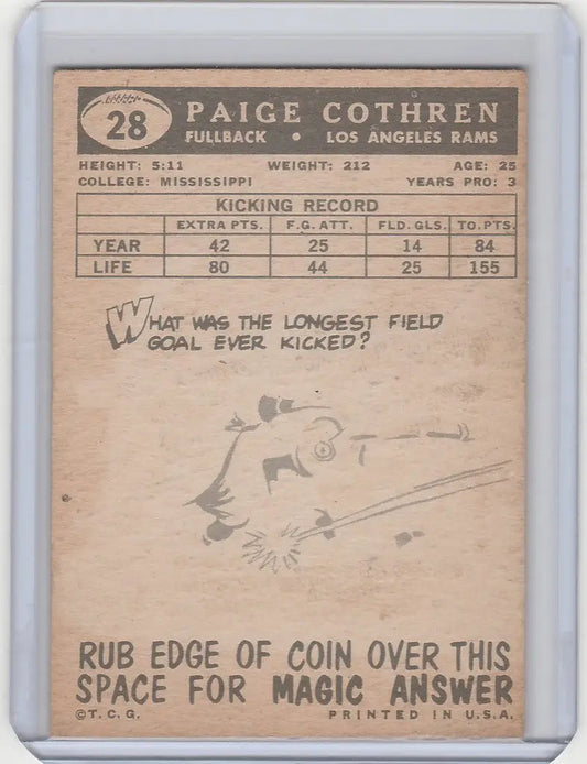 1959 Topps #28 Paige Cothren Los Angeles Rams EXMT