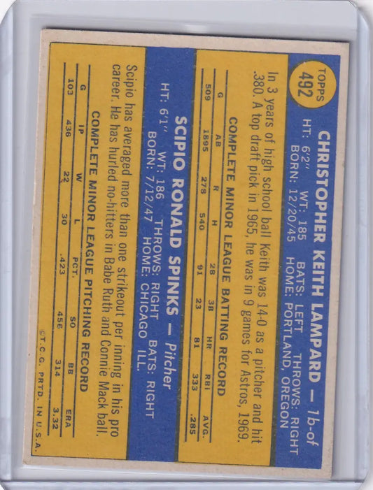 1970 Topps Baseball #492 Astros Rookies - Keith Lampard / Scipio Spinks