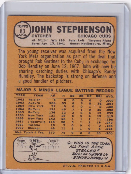 1968 Topps Baseball #83 John Stephenson - Chicago Cubs