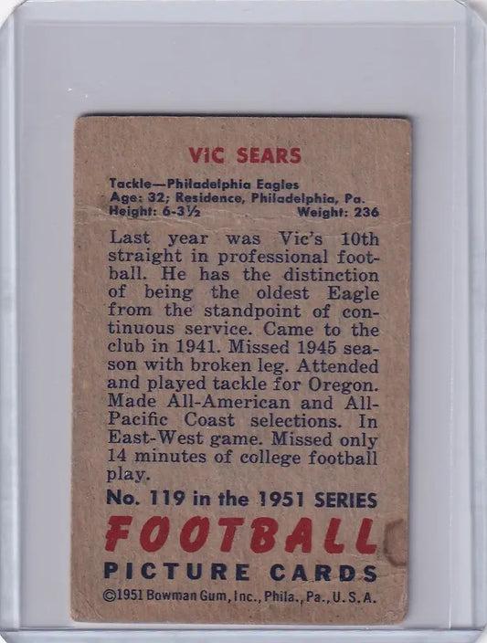 1951 Bowman Football #119 Vic Sears - Philadelphia Eagles